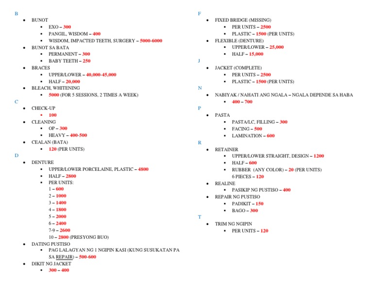 Walang fixed price sa pagpapasta. Libreng Bunot Pasta Linis at Pustiso Manila Philippines. Kung ito ay bagang maaaring umabot ito mula 700 hanggang 1200.